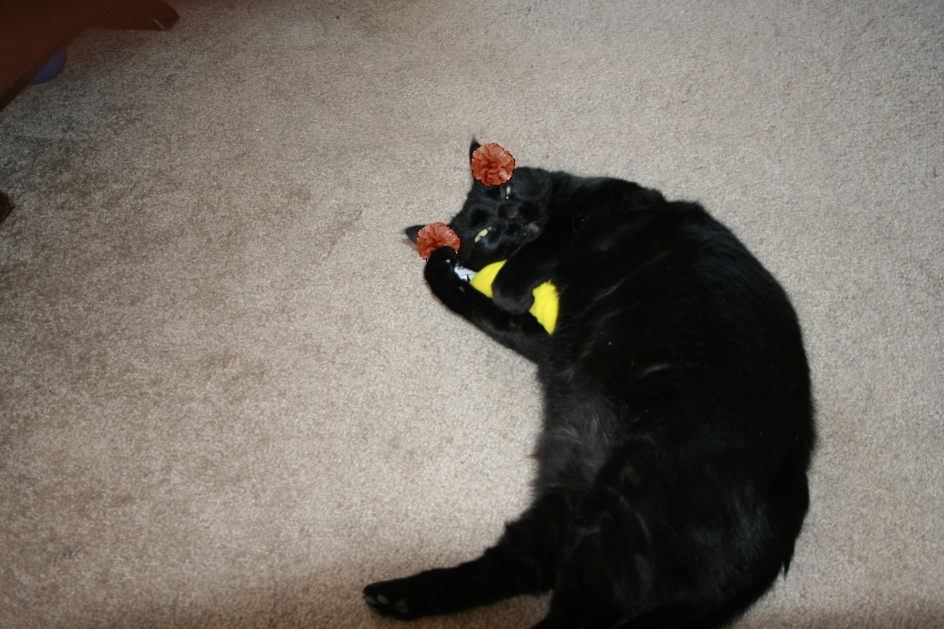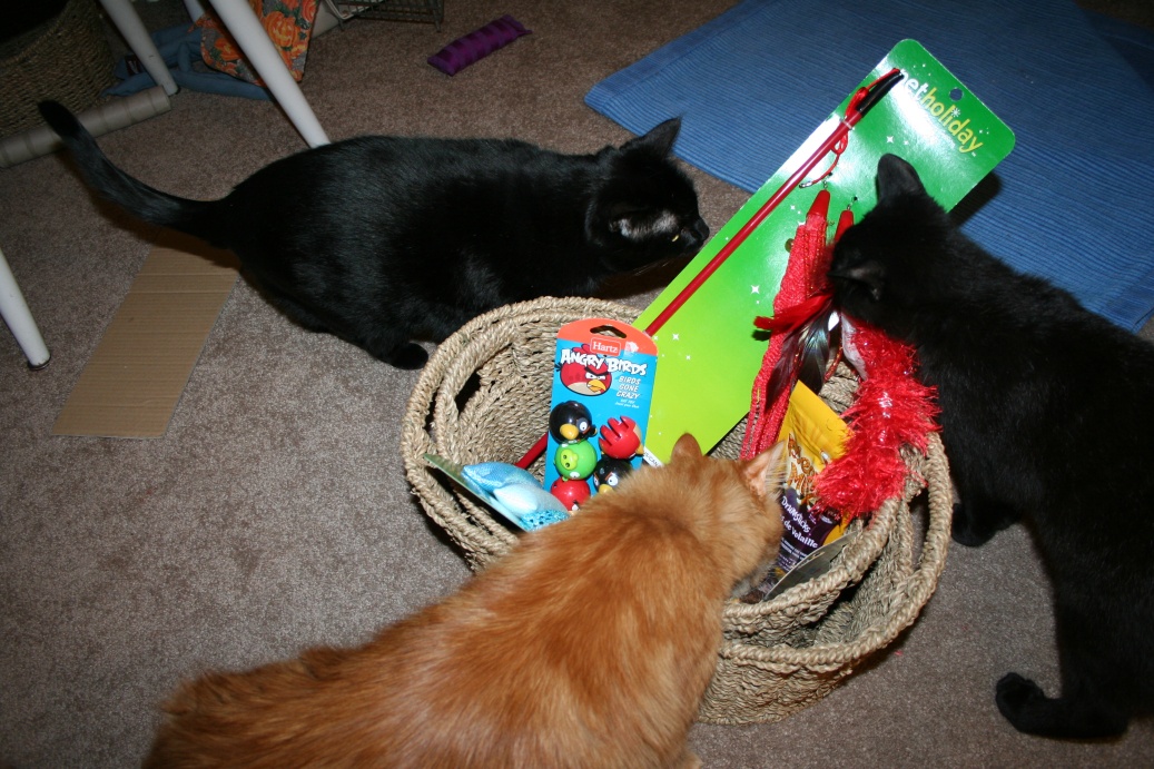 But we still had a great time after a slow start! My thanks to all the cats who helped knock over and pry open the toy box!